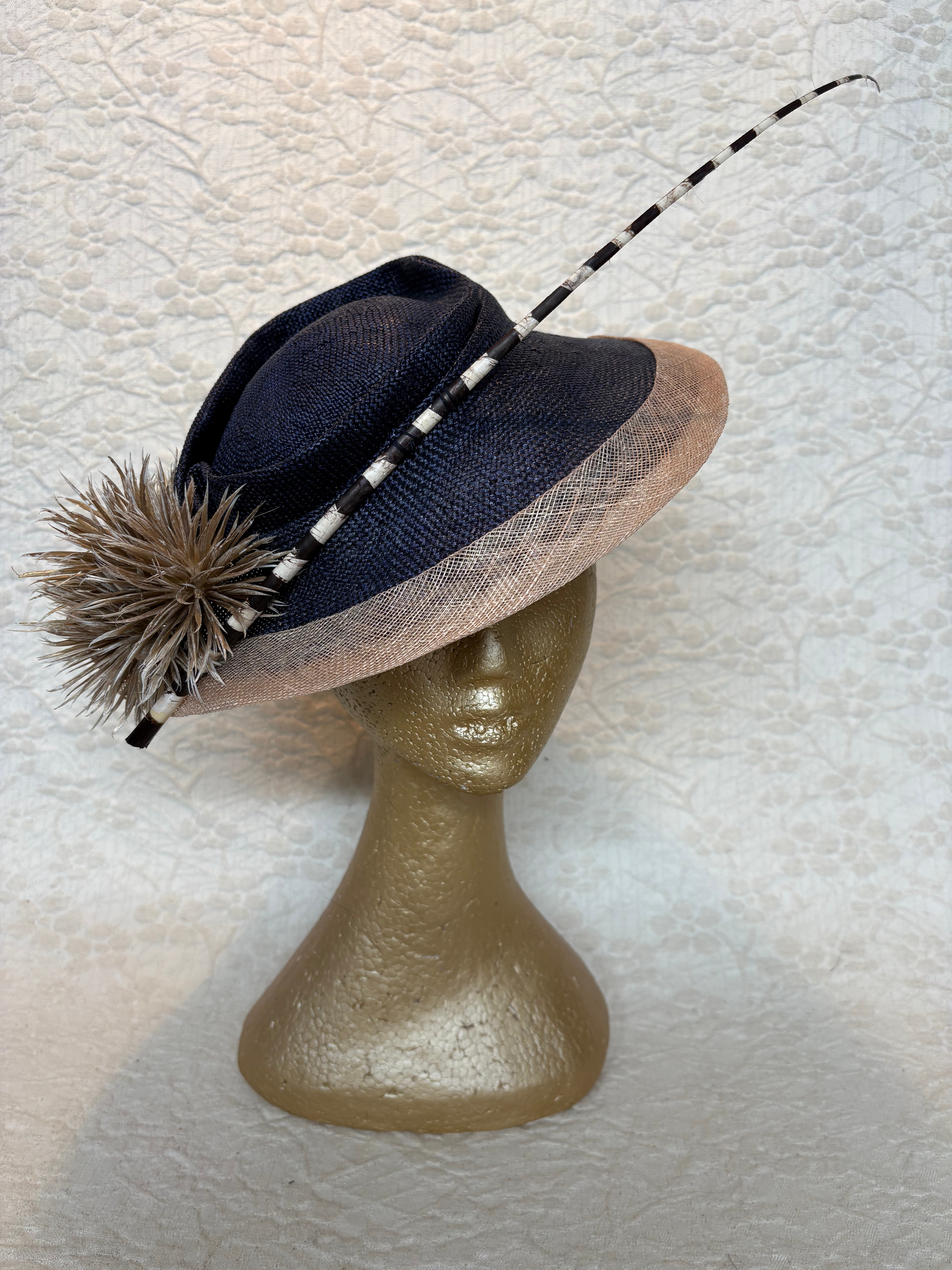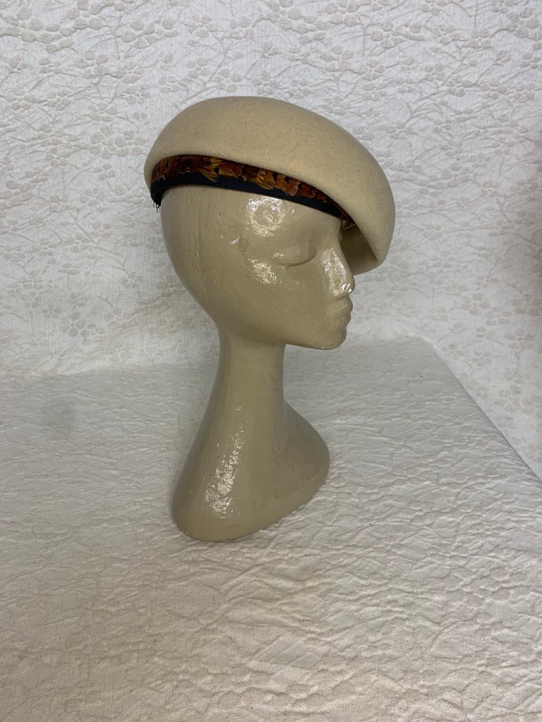 Creme Beret Pheasant Feather Trim